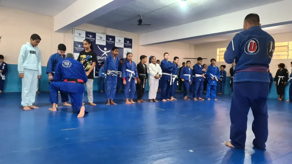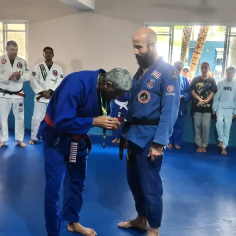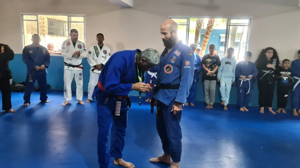 Am Samstag, dem 30.07.22, wurde ich von meinem Meister in Brasilien graduiert. Ich hatte das Glück, mit der Gruppe des Sozialprojekts meines Meisters graduiert zu werden, bei dem nur bedürftige Kinder aus armen Familien teilnehmen, die sich kein Trainingsgeld leisten können.